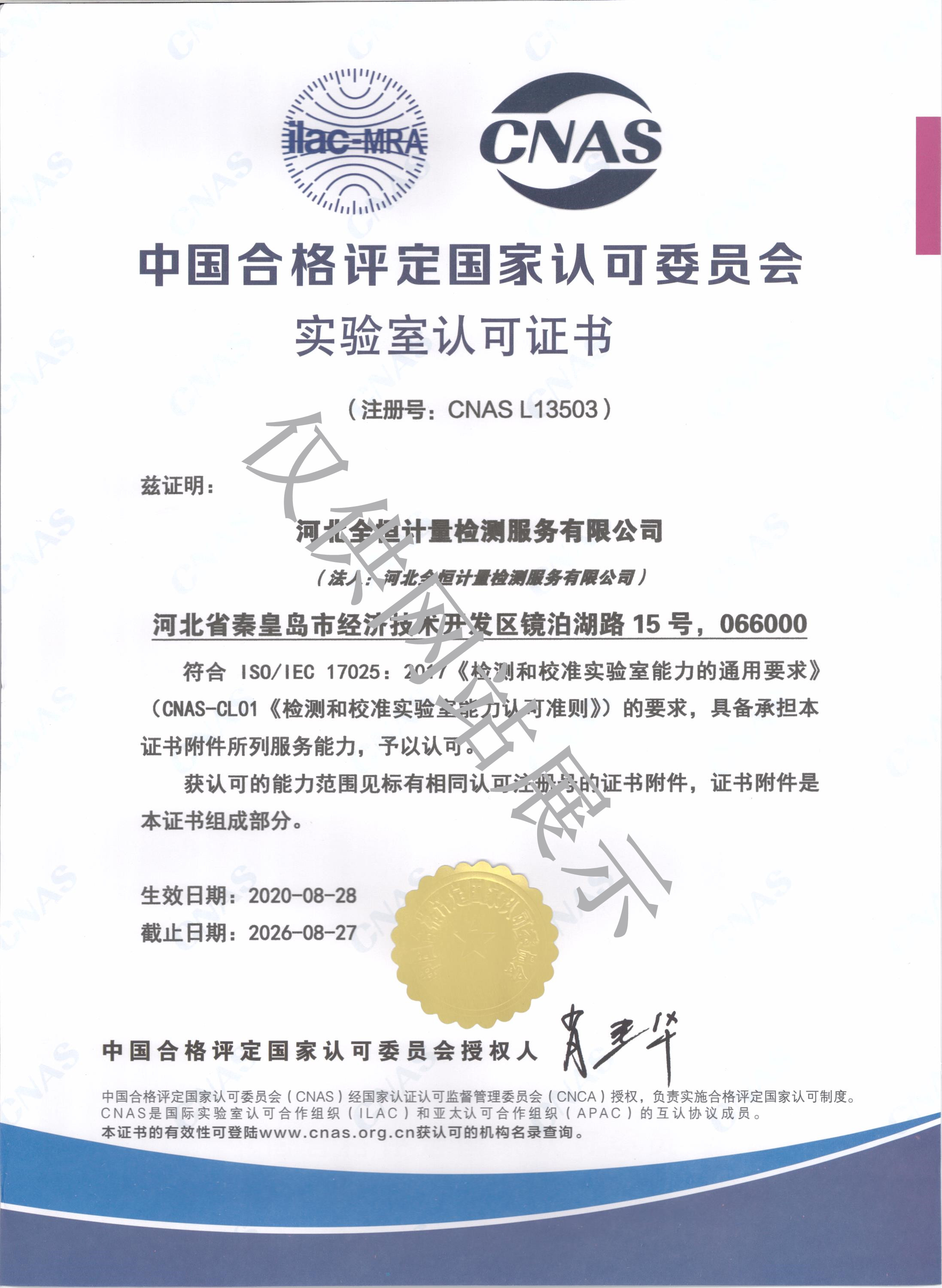 2020年11月27日至29日,來(lái)自中國(guó)合格評(píng)定國(guó)家認(rèn)可委員會(huì)的評(píng)審專家組一行蒞臨河北全恒計(jì)量檢測(cè),
